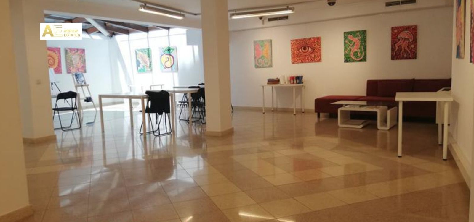 Двете нива са свързани посредством вътрешно стълбище. В района на административният и културен център на столицата.