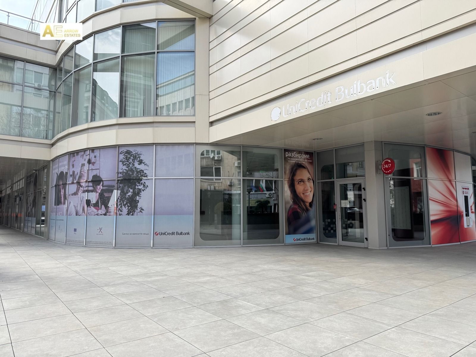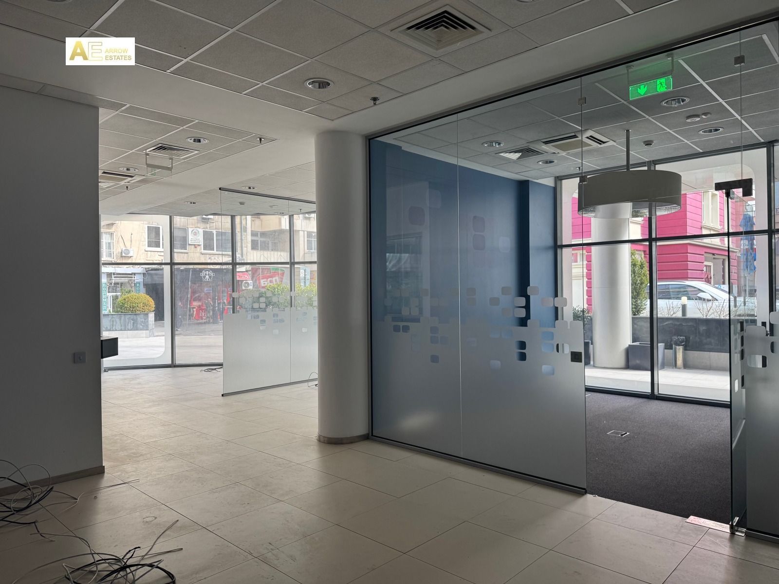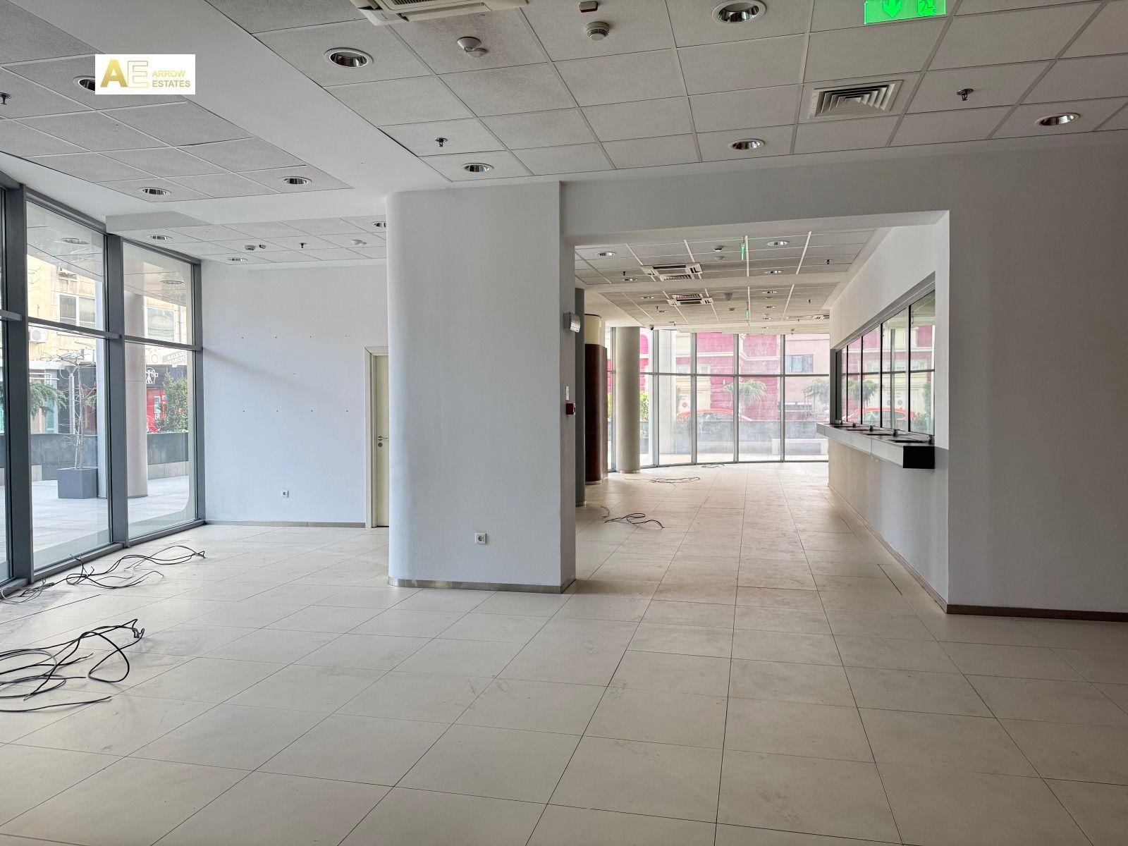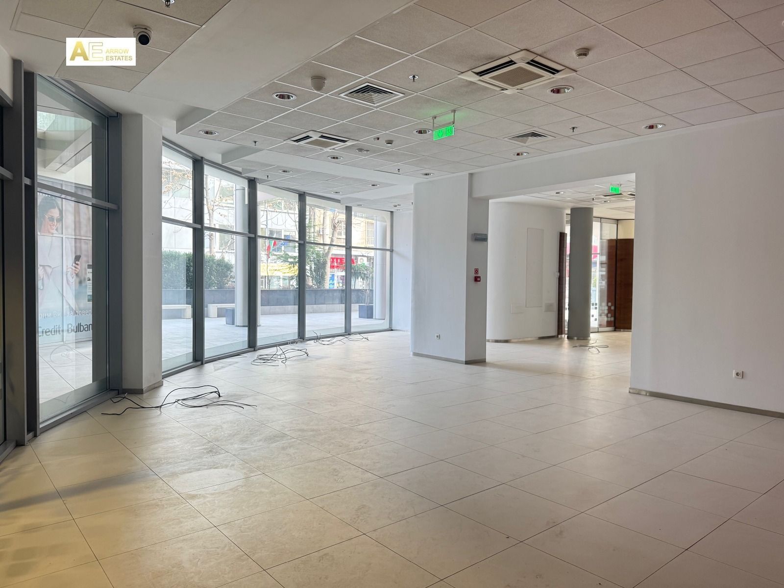 Търговска площ с раположение бизнес сграда в непосредствена близост до бул.Витоша и площад Македония. Видимост от две улици и големи витрини. Разпределението на имота помещение тип отворено пространство, зали с преградни стени от гипсокартон ,складовии санитарни помещения. Три вход/изхода. Двойни подове и окачен таван , които по договорка с клиента могат да бъдат премахнати.