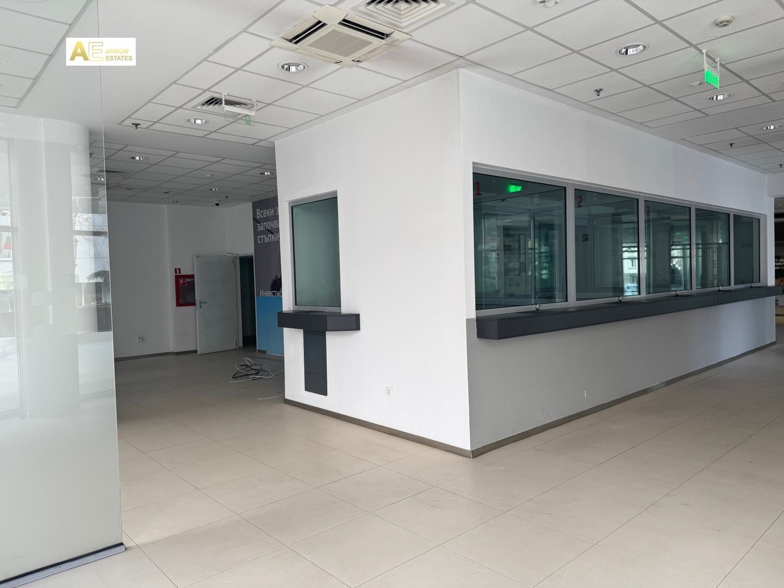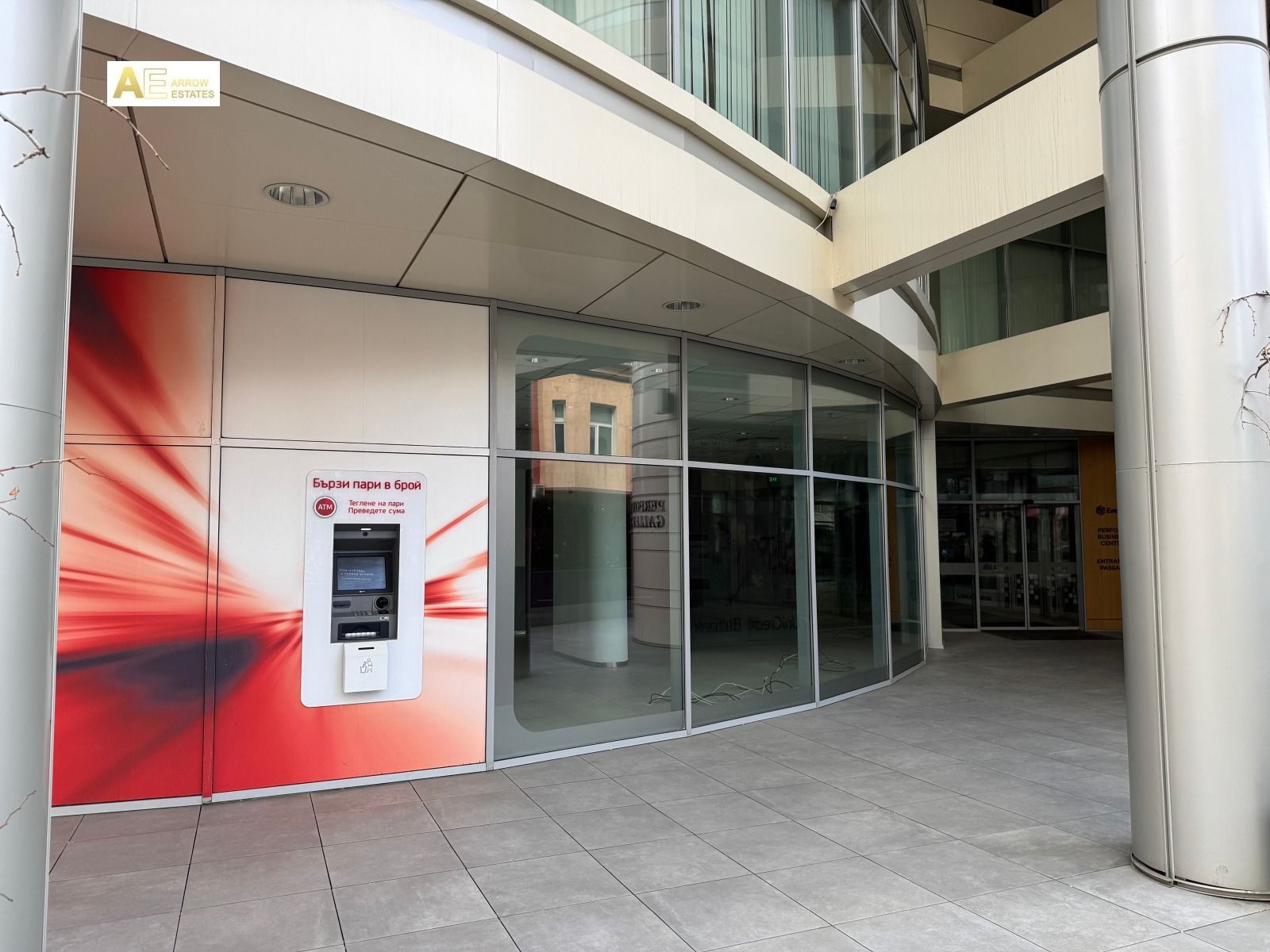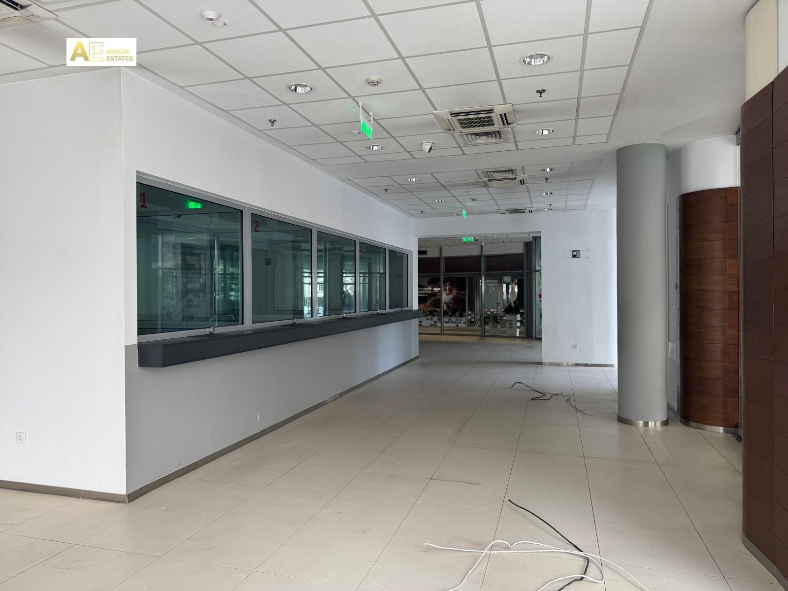 Търговска площ с раположение бизнес сграда в непосредствена близост до бул.Витоша и площад Македония. Видимост от две улици и големи витрини. Разпределението на имота помещение тип отворено пространство, зали с преградни стени от гипсокартон ,складовии санитарни помещения. Три вход/изхода. Двойни подове и окачен таван , които по договорка с клиента могат да бъдат премахнати.