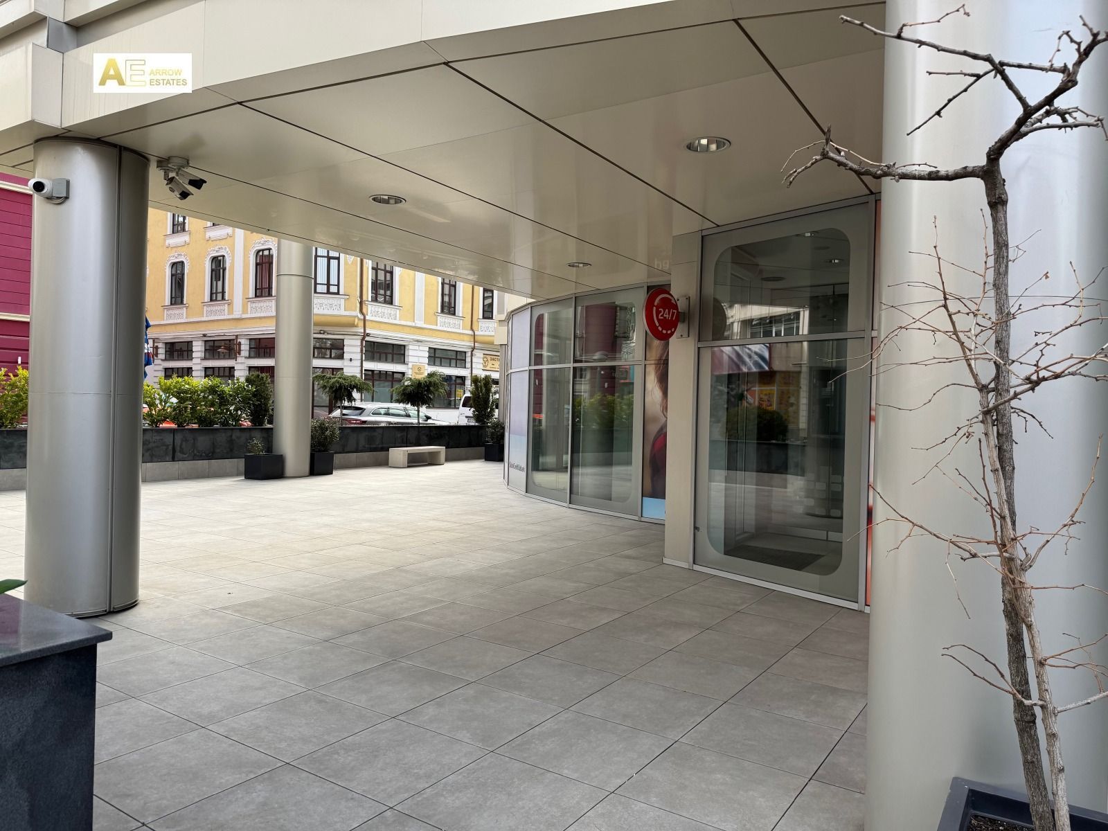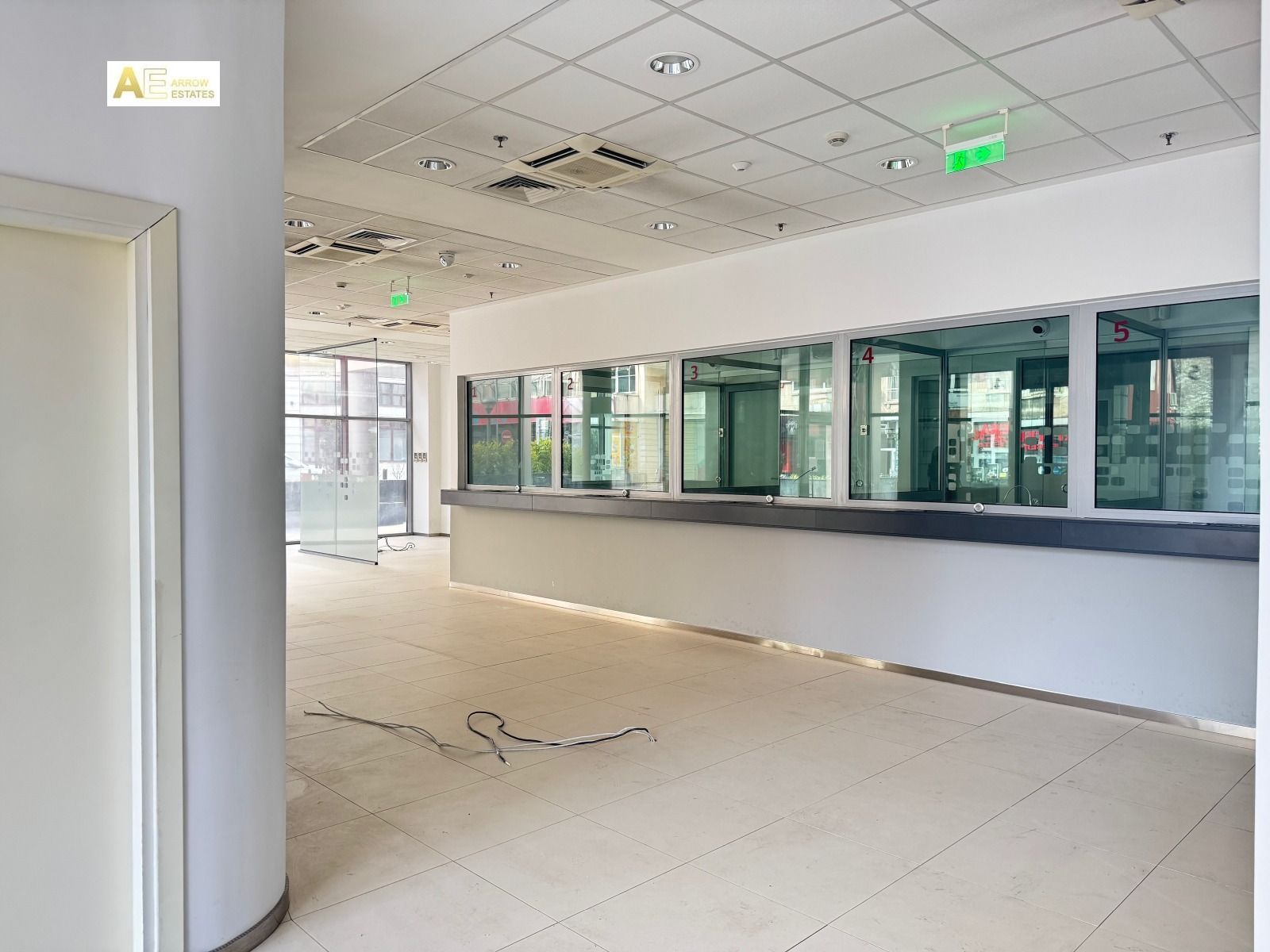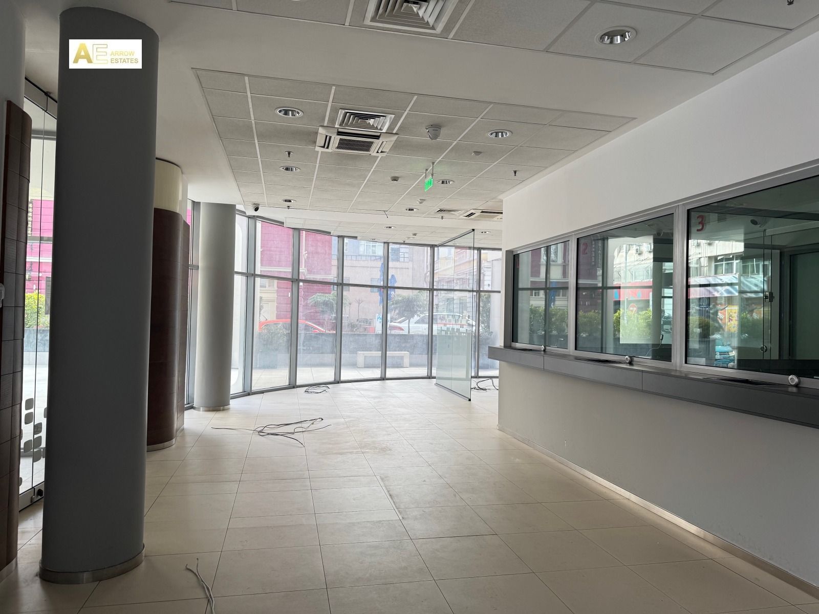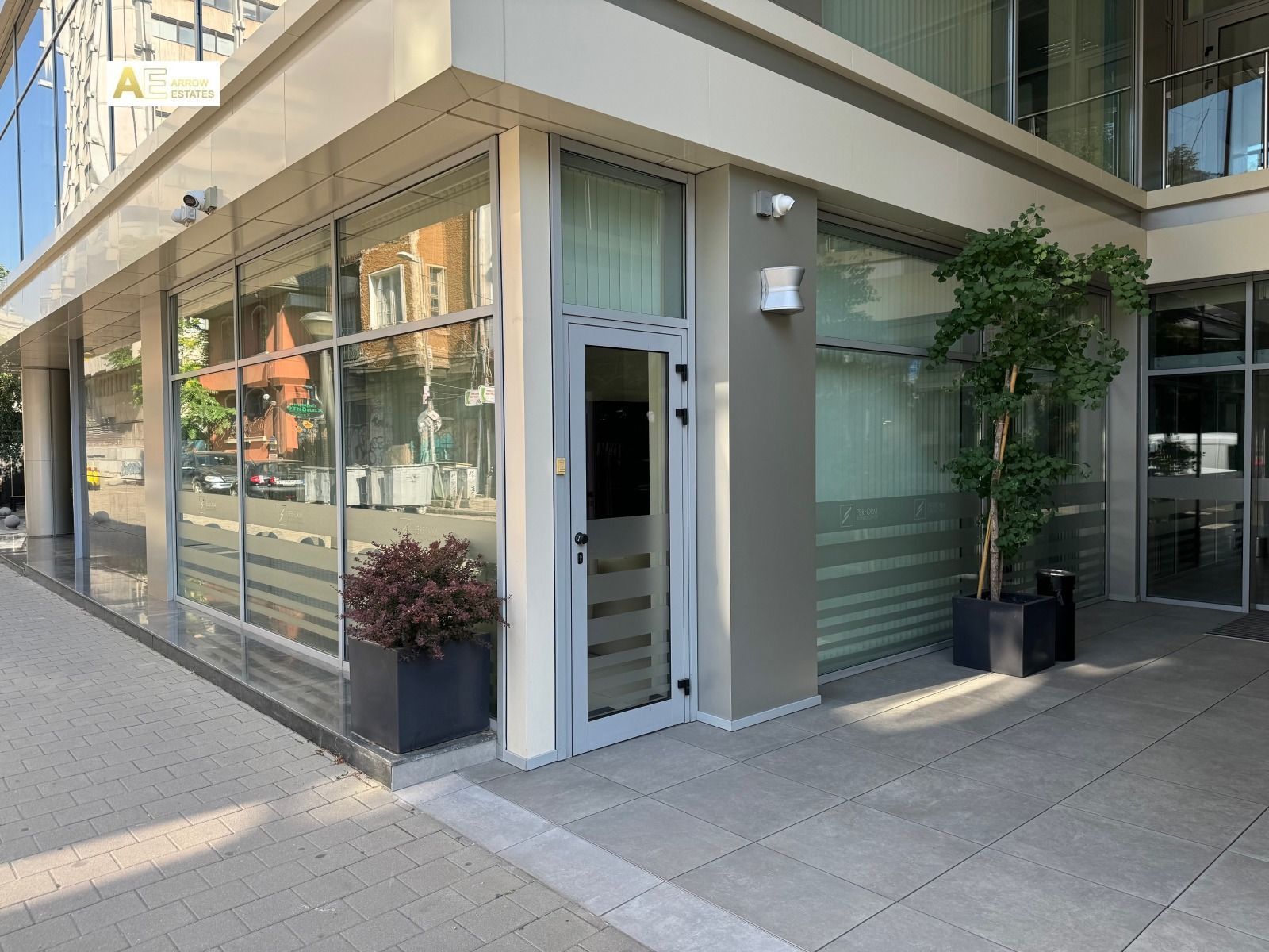 Търговска площ с раположение бизнес сграда в непосредствена близост до бул.Витоша и площад Македония. Видимост от две улици и големи витрини. Разпределението на имота помещение тип отворено пространство, зали с преградни стени от гипсокартон ,складовии санитарни помещения. Три вход/изхода. Двойни подове и окачен таван , които по договорка с клиента могат да бъдат премахнати.