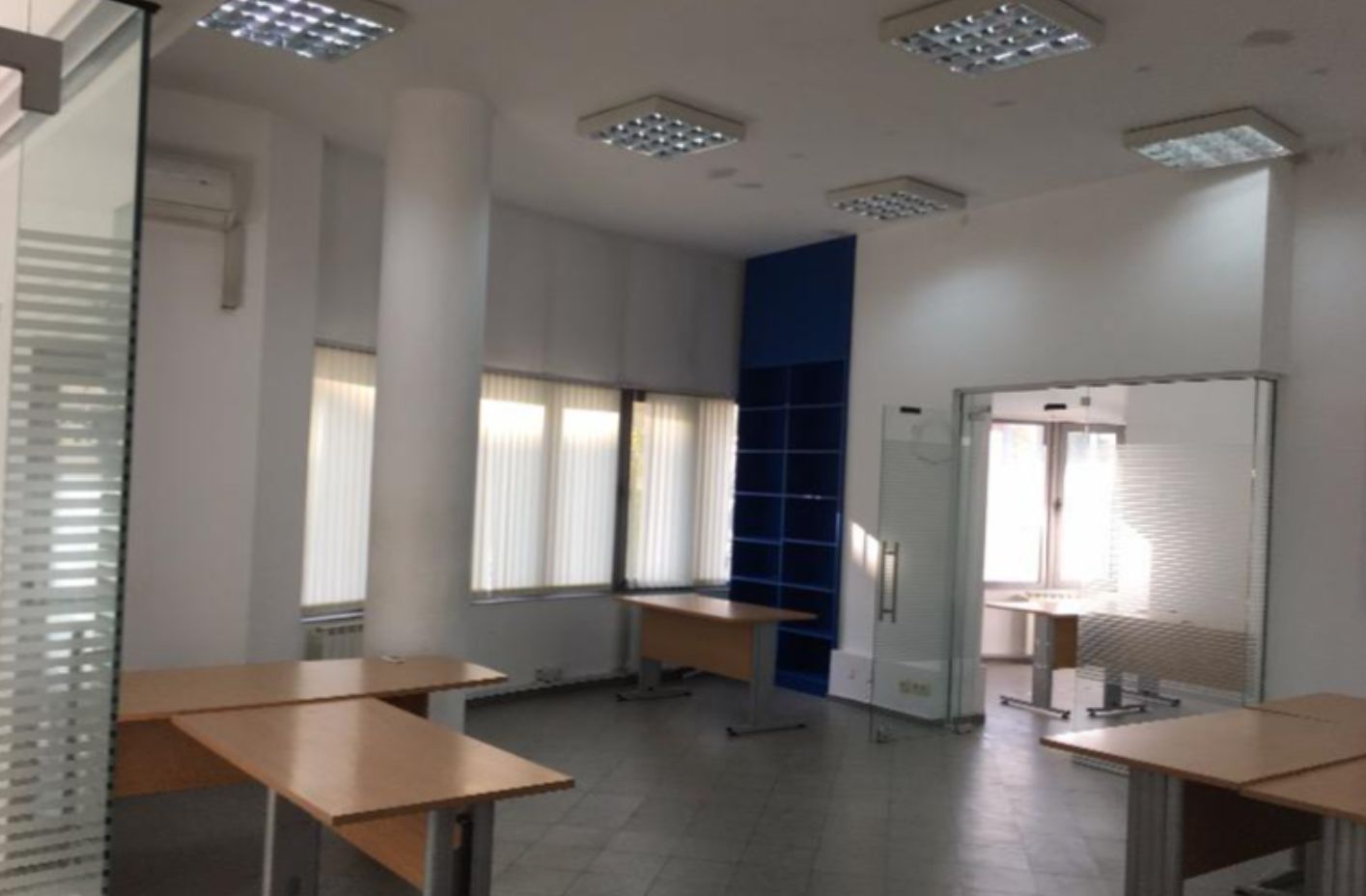 Представителен офис в бизнес комплекс разположен на комуникативна локация. Разпределението на офиса е антре ,по голямо отворено пространство и четири изградени кабинети . Кухненски бокс, санитарен възел и сървърно помещение. Офисът е окабелен и климатизиран. В сградата се осъществява контрол на достъпа, рецепция и жива охрана и видеонабюдение 24ч. /7 дни. Свободно паркиране пред сградата.