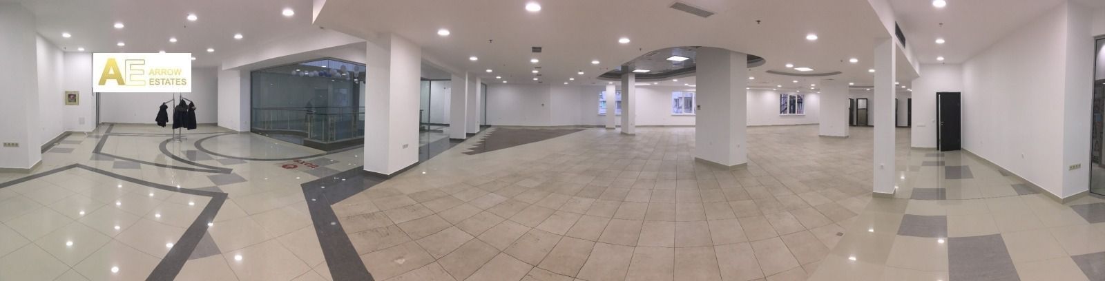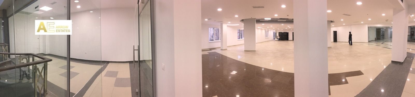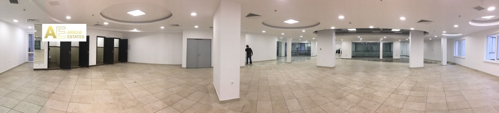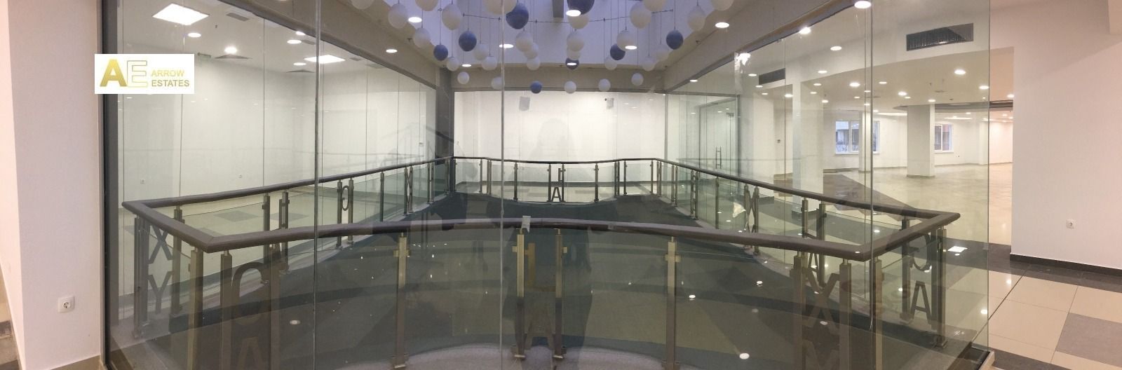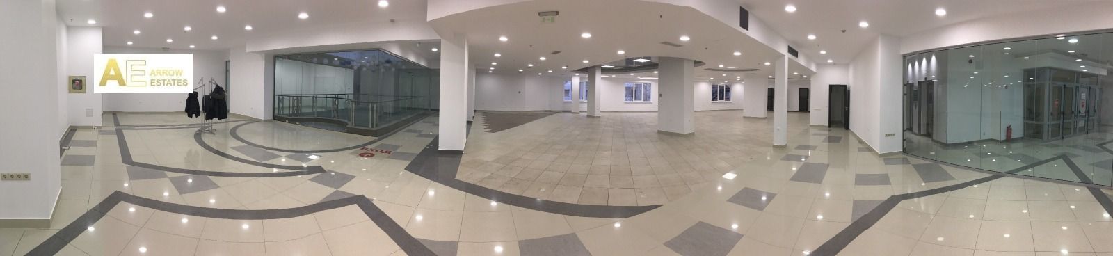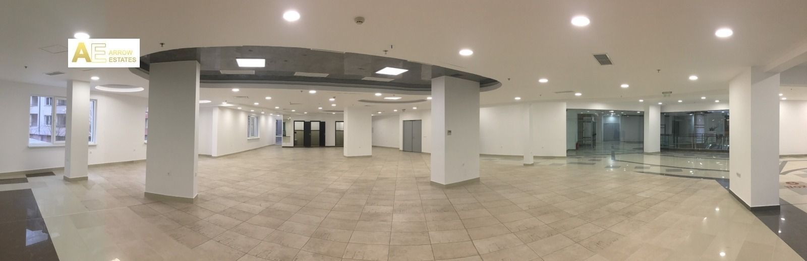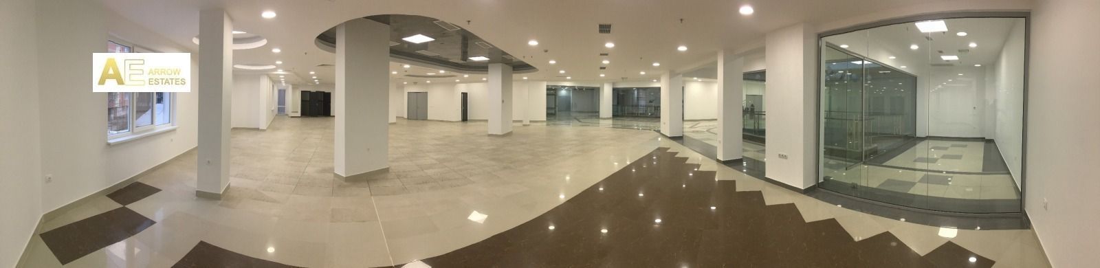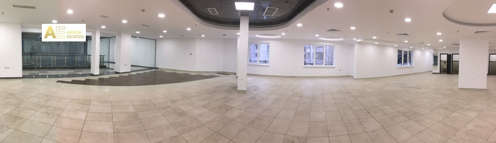 Представителен магазин, офис, търговска и административна площ , разположен в бизнес център. Разпределението е тип отворено пространство, допълнително са изградени със стъклени преградни стени , заседателни зали/кабинета/склад с размери 25кв.м., тераса, два входа; сървърно помещение и 4 броя WC .